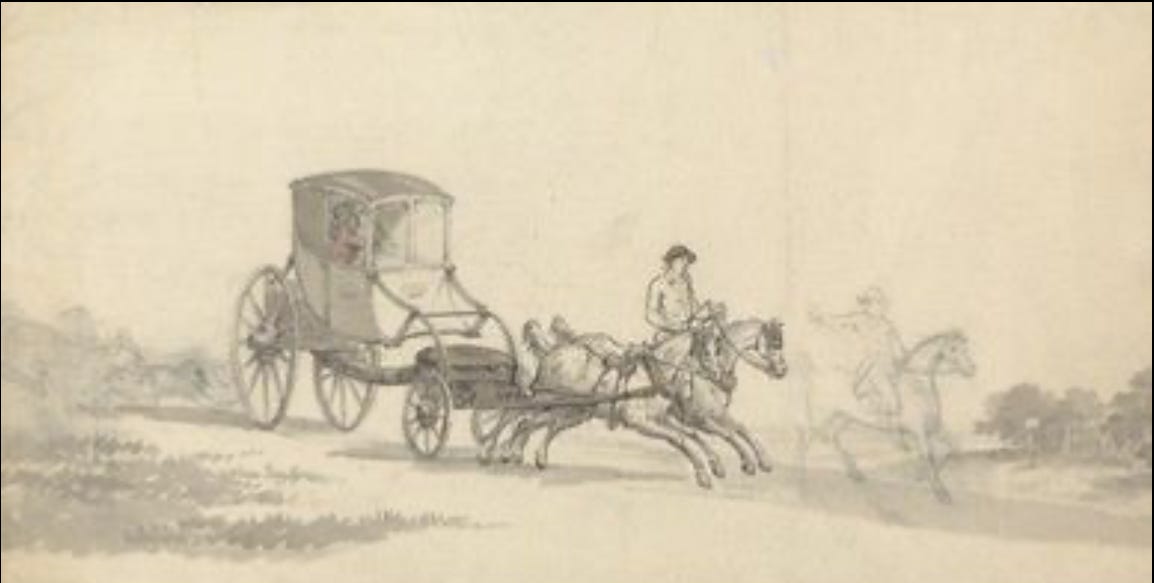 Letters from southern England travelled to and from Newcastle via the Old Great North Road, the historic route from London to Edinburgh. The road stretched over four hundred miles, passing through towns and cities that would be familiar to anyone travelling by train from London to Newcastle on the London and Northeast railways today: Newark, Doncaster, York, Durham, etc.