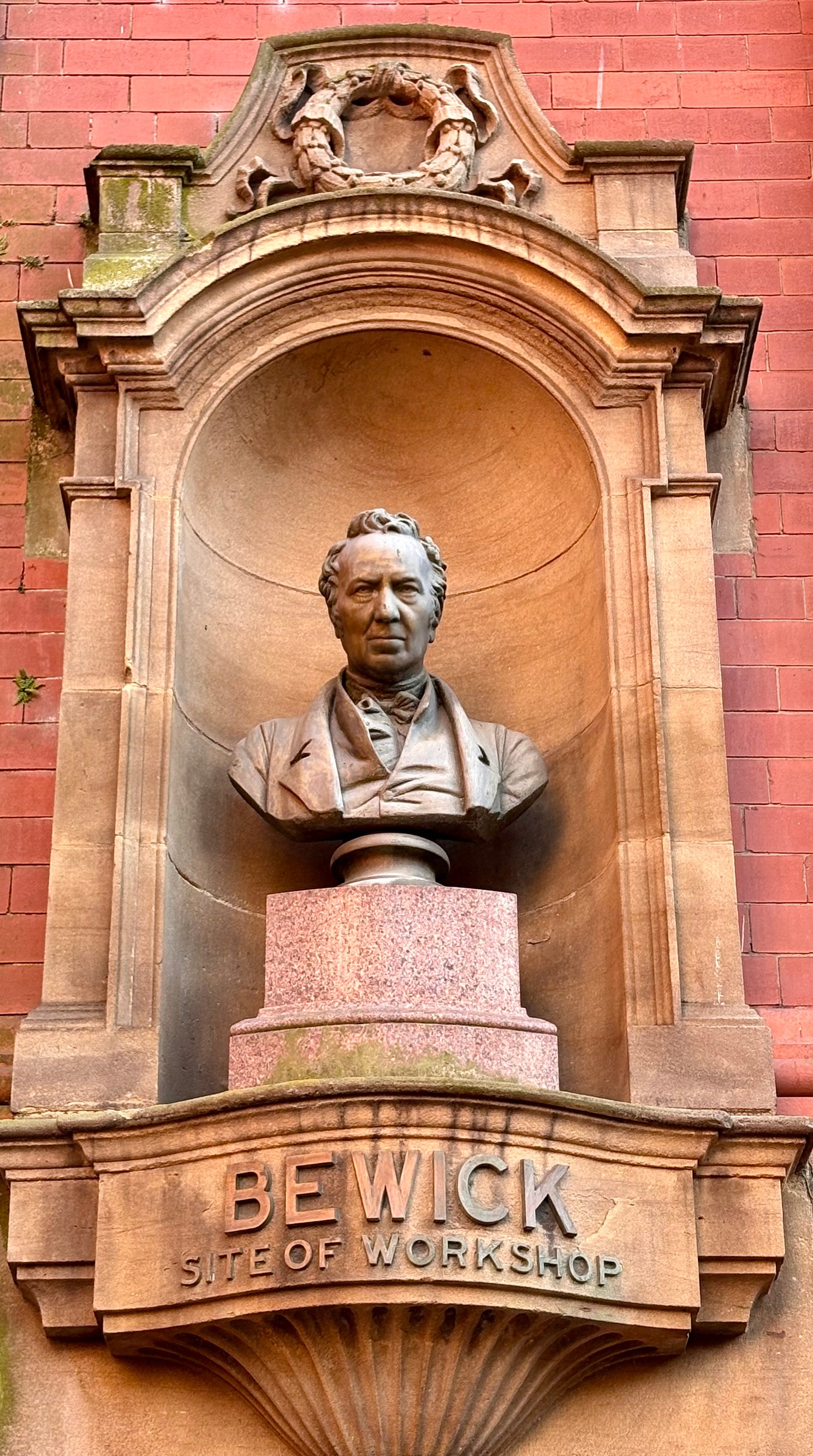 Just outside the cathedral at the aptly named Amen Corner stands Milburn House, upon which is a bust of Thomas Bewick, one of Britain's most talented 18th-century engravers. The bust marks the spot where his workshop once stood. Thomas was recognised for his strong moral sense and was an early advocate for the fair treatment of animals. He objected to the docking of horses’ tails and the mistreatment of performing animals.