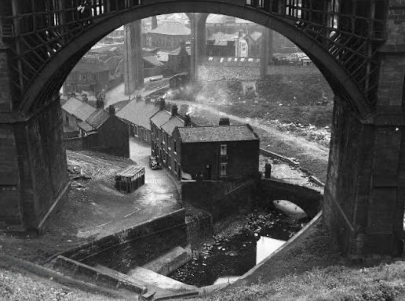 All the industries I’ve mentioned relied on the Ouseburn’s tidal waterway, which allowed boats like keels and later wherries to travel upstream from the River Tyne to bring in raw materials and ship out finished goods to and from tightly packed buildings sitting all along the water’s edge, with slipways, boat supports, loading equipment, mill races, and waterwheels. By the mid-1800s, the valley was a mass of factories, workshops, and workers’ housing, making it one of Newcastle’s first industrial suburbs. The area was lively but crowded, with people living close to heavy, dirty, and often dangerous industry. The lower Ouseburn Valley’s industrial scene was vastly different from that of the upper part, which became home to Victorian parks such as Jesmond Dene, Heaton Park, and Armstrong Park.