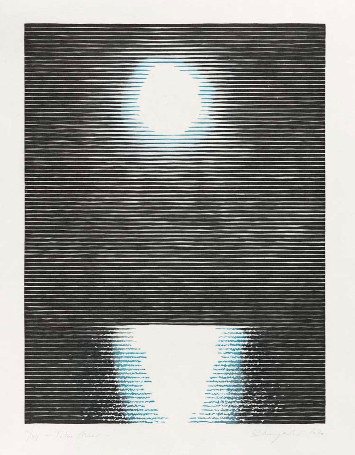 Christiane Baumgartner’s ‘Totes Meer’ (‘Total Sea’) is a large-scale print by the leading German artist known for woodcut and printmaking. Christiane transfers computer-edited images from her own photos and videos onto large woodblocks, then hand-cuts the blocks for printing, thus combining the contemporary aesthetic of digital images with traditional methods.